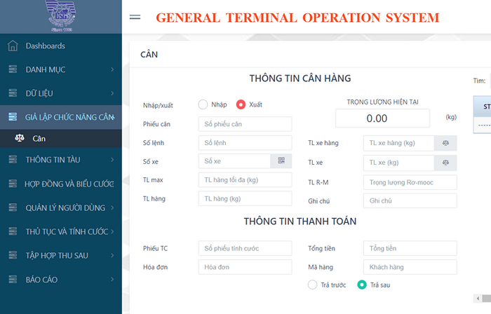 Hệ thống phần mềm Quản lý điều hành khai thác cảng Hàng tổng hợp (General Cargo Terminal Operating System) thực hiện quản lý toàn bộ nghiệp vụ xếp dỡ, giao nhận, kiểm đếm đối với cảng chuyên khai thác hàng tổng hợp (hàng rời/xá, hàng bao/kiện, hàng lỏng, Ro-Ro, thiết bị, động vật sống…)